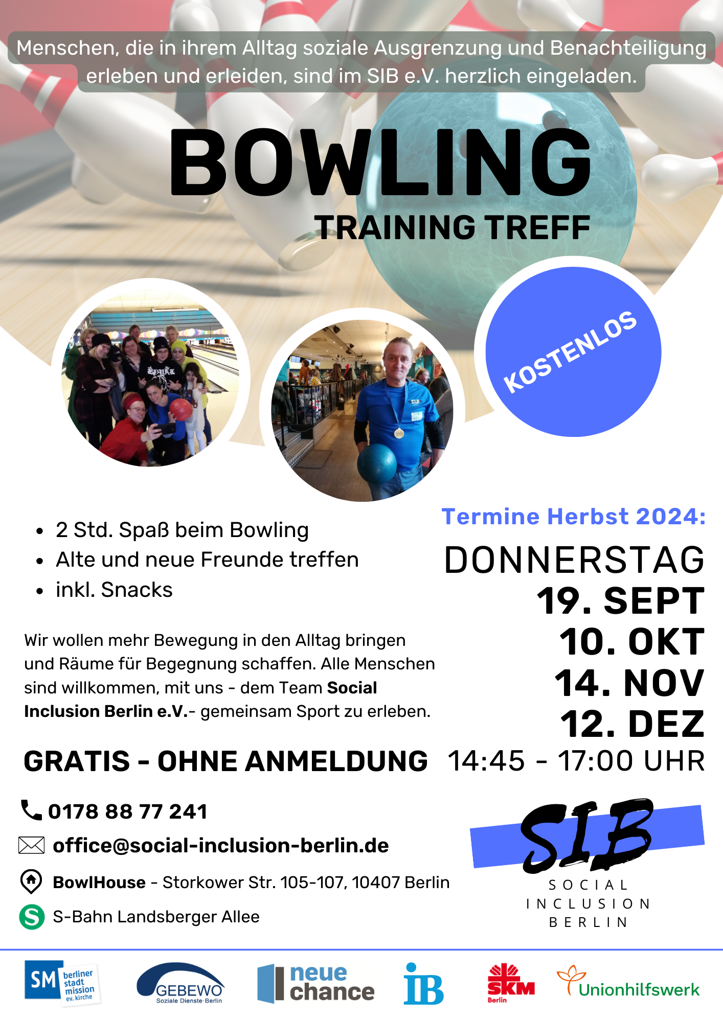 Hier sind die nächsten Termine für Bowling mit SIB im Herbst 2024: