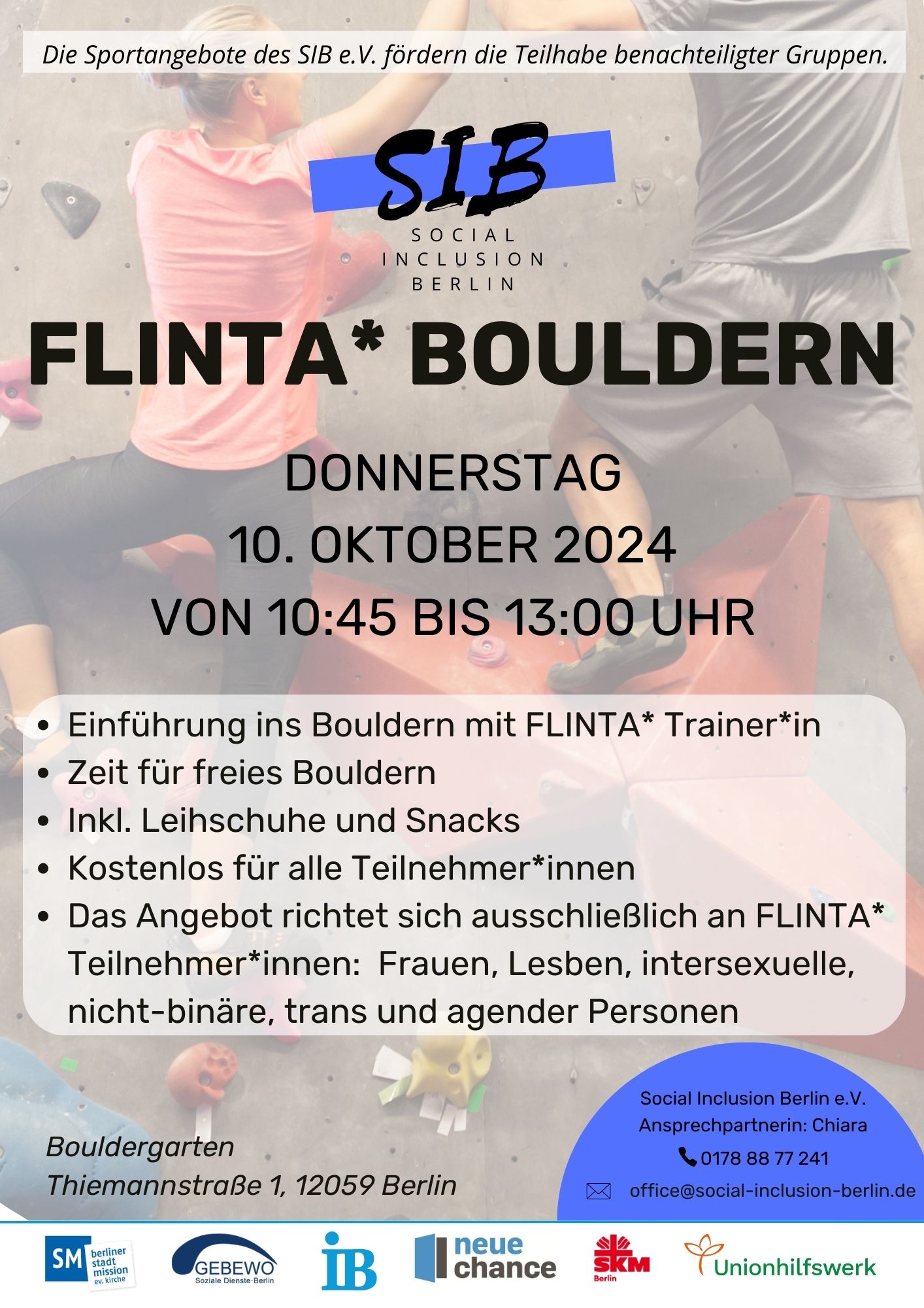 Ablauf SIB-Bouldern-Angbeot 10.10.2024