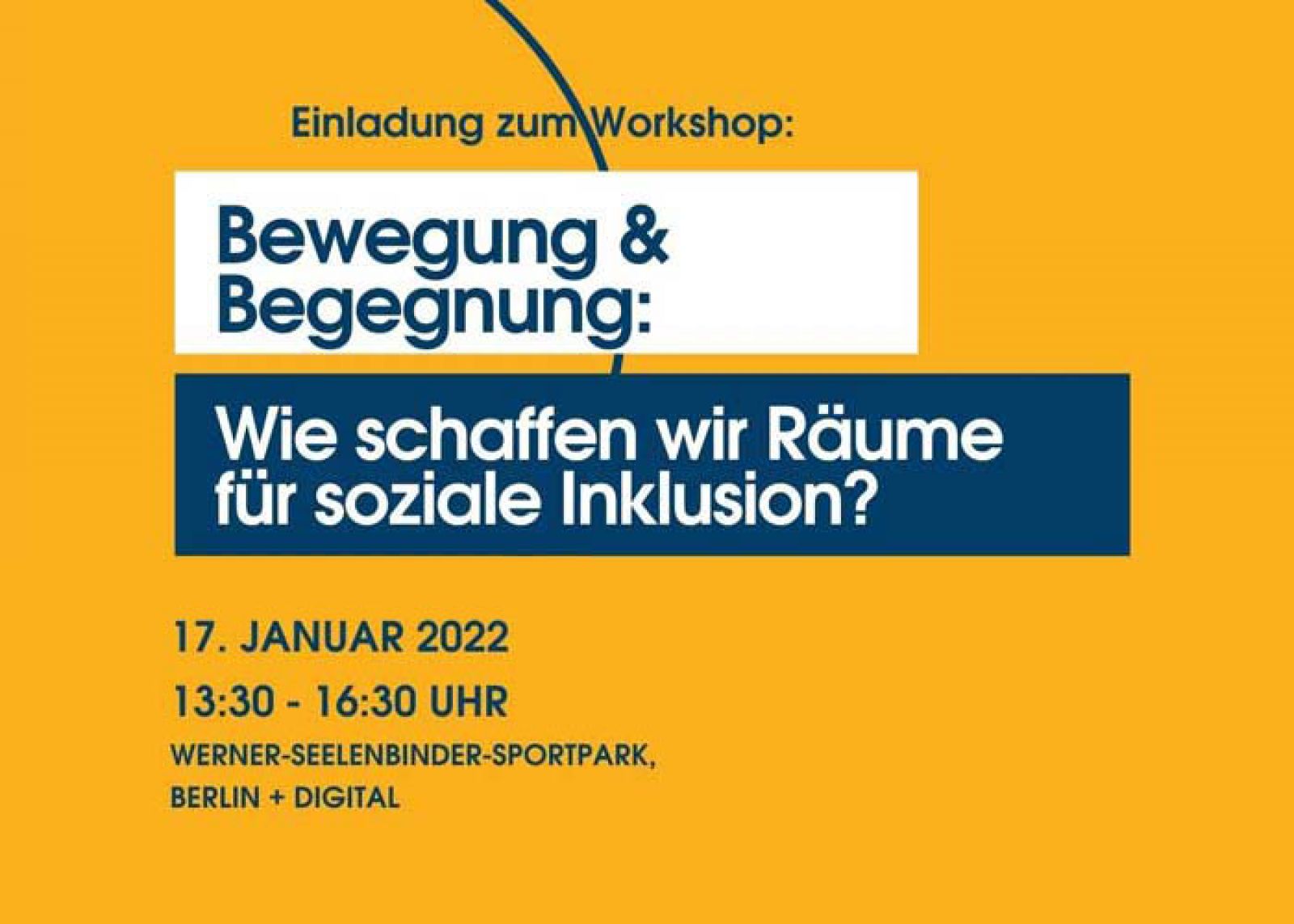 Am Montag, 17. Januar 2022, findet von 13:30 bis 16:30 Uhr ein Workshop zum Thema „Bewegung & Begegnung: Wie schaffen wir Räume für soziale Inklusion?“ in den Vereinsräumen des Tasmania e.V. im Werner-Seelenbinder-Sportpark Neukölln – Location für di Inklusive Sporttage – alternativ auch online.